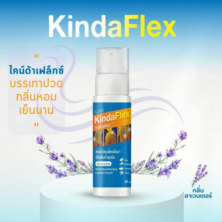 KindaFlex ไคน์ด้าเฟล็กซ์ "คลายปวด คลายเมื่อย ไคน์ด้าเฟล็กซ์" บรรเทาปวดทันใจ เย็นนาน ซึมซาบไว ด้วยสมุนไพรนาโน กลิ่นลาเวนเดอร์ ช่วยให้ผ่อนคลาย ไม่เหนียวเหนอะหนะ
